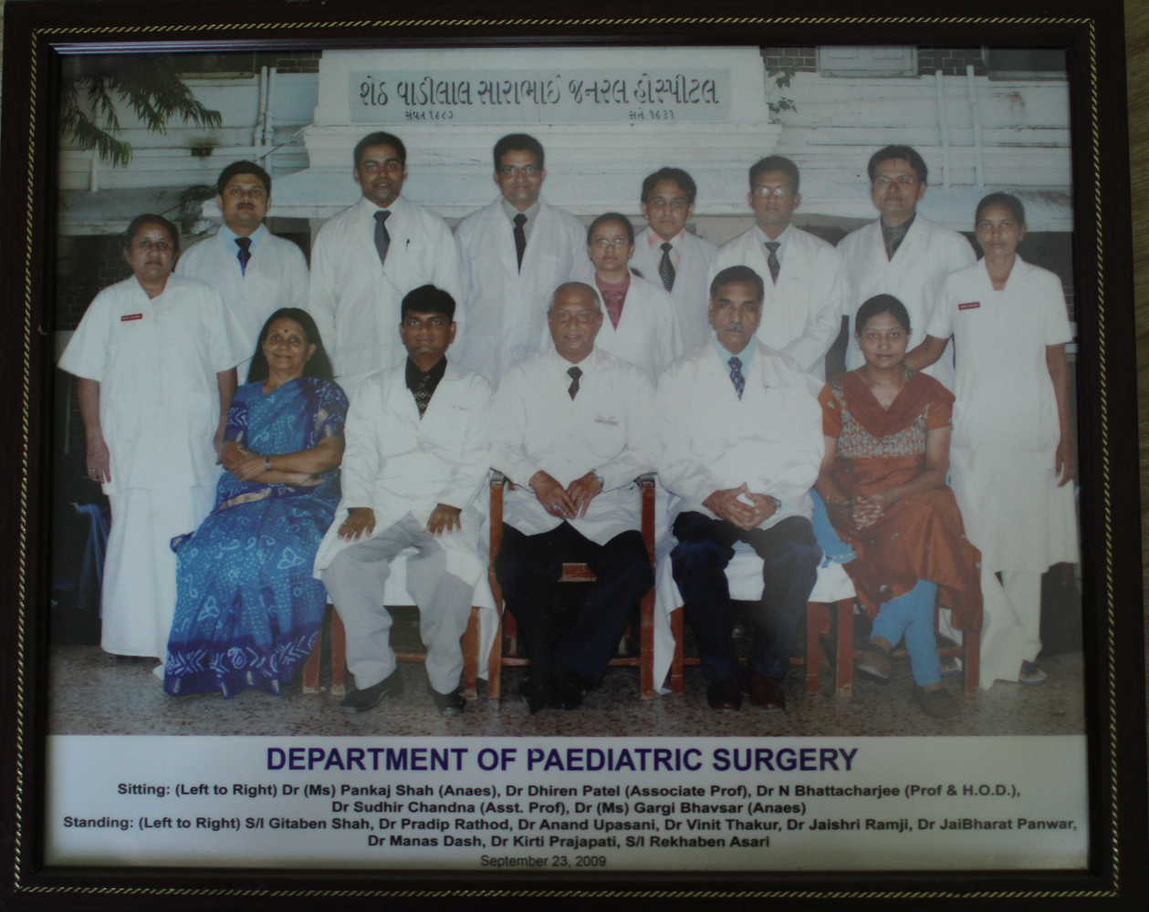 Thereafter, he shifted to N.H.L. Municipal Medical College and V.S. Hospital, Ahmedabad and also side by side, started his own nine – bedded private hospital at Ellis Bridge, Ahmedabad. The department of V.S. Hospital greatly owe to him for the latest facilities and highest level of patient care rendered to the tiny patients at a very affordable cost. Incidentally the department is recognized by medical council of India for teaching and training students already having M.S. in General Surgery for the degree of M.Ch. (Pediatric Surgery) under Gujarat University. The students for their M.Ch. course are selected on all India merit basis. Dr.Bhattacharjee had been the Professor and Head of Department for last several years over there. |
